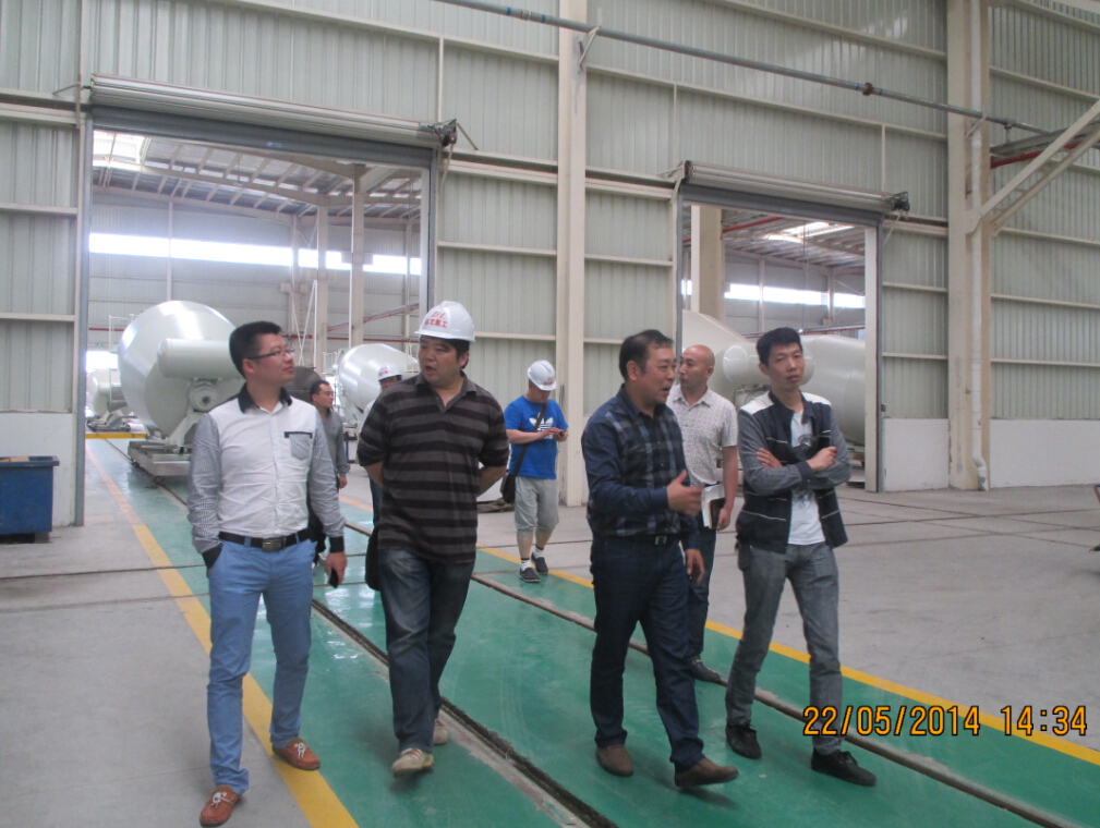 趙龍重工作為義烏市重點項目工程之一,以生產大型預拌混凝土攪拌運輸車為主,受到了金華市散裝水泥發展與應用協會(以下簡稱“散協”)和義烏散裝水泥辦公室(以下簡稱“義烏散辦”)的高度重視和關注。5月22日,為了及時了解并全面掌握趙龍重工生產經營情況以及存在的困難和問題,義烏散辦主辦的“大走訪”企業調查活動于我公司義烏生產基地順利開展.金華市散協斯敬明副理事長及楊欲發秘書長、義烏散辦王恒華主任、義烏商混公司朱小明等領導在我司總經理斯之清、馬宏偉陪同下共同參觀了義烏特種車生產車間。